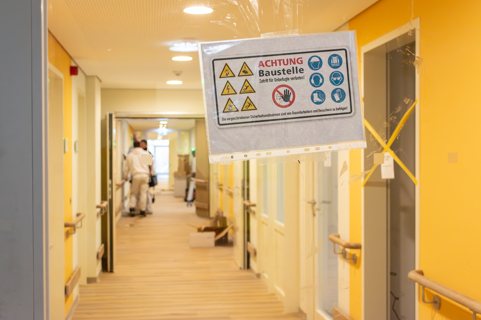 Die Handwerker:innen und Haustechniker:innen arbeiten auf Hochtouren, damit alles rechtzeitig fertig wird. Einige Räume sind schon jetzt beinahe bezugsfertig.