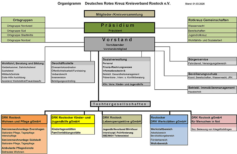 Die Struktur des DRK Kreisverbandes Rostock e.V. als Organigramm.